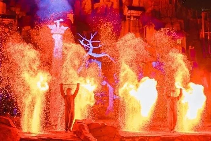 全国首创情景故事花火秀《天下郯礼》以上古神话传说为创作背景,融入了激光隧道、打铁花、空中飞人、天女散花、烟花瀑布等影视创作手法进行艺术创作,带来一场夜空的花火视觉盛宴。
