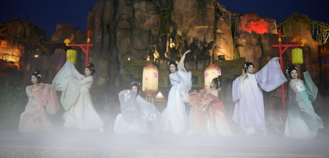 沉浸式行进情景剧《寻仙之旅》在御花园设置三幕式行进观演路线,带领游客在亭台楼阁间探寻古郯龙文化与东夷文明的神秘魅力。